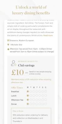 Club members simply present a digital card when dining, or click to book online through the app for benefits to be applied automatically.