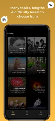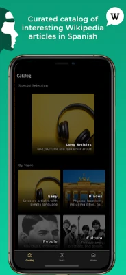 Lwingo is the best app to practice Spanish while listening to Wikipedia podcasts about your favorite topics: