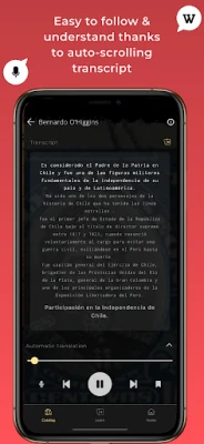 - Many Wikipedia pages to listen to as a podcast, in Spanish - Learn about your favorite topics while enriching your Spanish vocabulary: History, Science, Culture, Art, Geography - Podcast transcript synchronized and always available for an easier understanding - Translation in your language is always available, to help learn new words and enrich your vocabulary - save unknown words, study and learn them easily by playing Flashcards