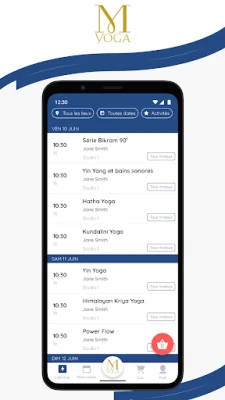 Téléchargez l’appli M-Yoga, studio de yoga à Boulogne-Billancourt, pour accéder au planning, réserver vos cours, vos formations certifiées, vos retraites, vos massages, et visualiser vos cartes et les promotions du moment.