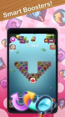 Play through hundreds of levels with smooth progression, unlock bonus stages, and enjoy boosters that make your adventure easier – undo moves, shuffle the board, or use a hint that matches tiles automatically.