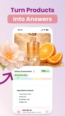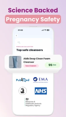 Mia explains ingredients in plain English and answers pregnancy-safe skincare questions in seconds. AI supports explanations — it is not the source of safety decisions.
