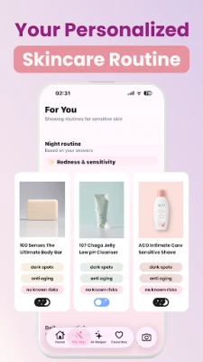 Your “For You” page builds gentle, pregnancy-safe recommendations based on your skin concerns and preferences.
