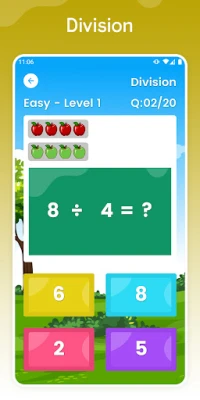 π‘ Quickly learn division by touching and counting apples in pairs in Easy - Level 1