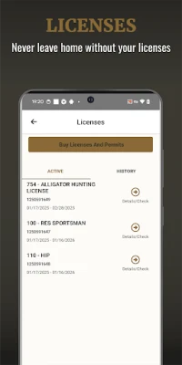 · Display licenses and permits- view current and past licenses and permits on your phone