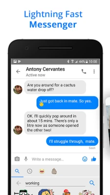 Say goodbye to app switching. Messenger Plus combines browsing, chatting, video calling, gaming, and streaming into one lightweight app. Save storage space, reduce data usage, and enjoy a seamless experience.