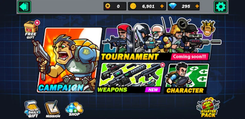 an army of mercenaries trying to finish their mission to save the world, then go home and take a well-deserved nap. Choose your commando, purchase an arsenal of powerful guns and grenades then blow everything up.