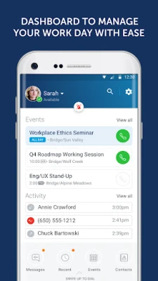 Bring your desk phone with you wherever you go with the MiCloud by RingCentral mobile app. Easily access your enterprise contacts, join conferences with one click, and manage your calls and voicemails - all powered by our new user-friendly design.