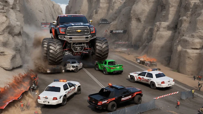 Get ready for the ultimate monster truck battle in Monster Truck Demolition Derby, where high-speed crashes and intense combat collide! Drive powerful 4x4 monster trucks, unleash mounted guns, and destroy your enemies in an action-packed demolition arena. This thrilling monster truck racing game combines destruction derby stunts with explosive combat, making every race a battle for survival!