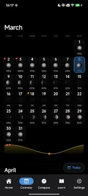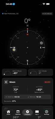 App mechanics included in Moon Phase: Lunar Calendar: Precision Tracker to view current illumination and daily details. Advanced tracker to spot upcoming supermoons and track monthly cycles. Photography Scores so you know the optimal viewing times for your location. Interactive Compass to locate celestial bodies in real time. Educational Hub to learn about astronomy with interactive visual tools.