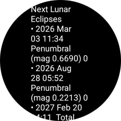Moon Phases for Wear OS puts a complete lunar and solar companion on your wrist. Track the Moon’s phase, illumination, distance, apparent size, and sky position for your location. Explore detailed solar data, live space weather, upcoming eclipses and meteor showers, plus past and future lunar outlooks. Uses high-quality lunar imagery online with seamless offline support.