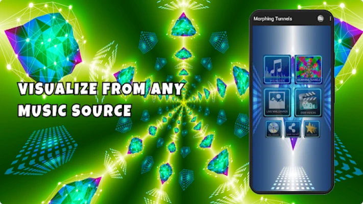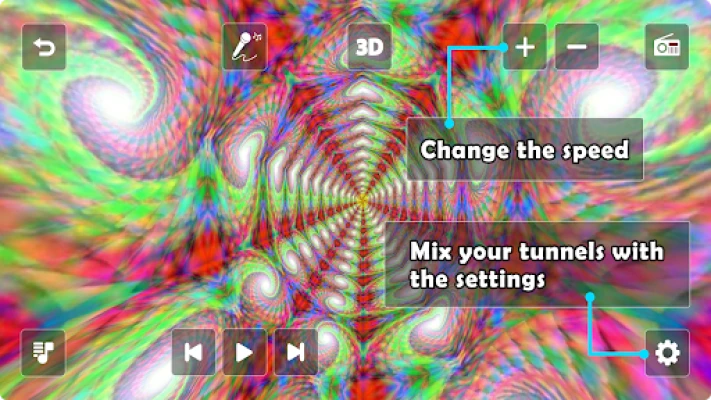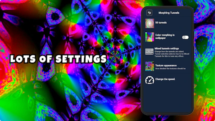 Fractal spiral tunnel, Alien cell tunnel and many more tunnel textures are available from the settings menu.