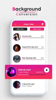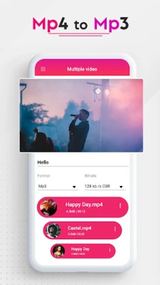 Convert mp4 to mp3, video to audio, and save as music. You can listen high quality mp3 songs on your phone.