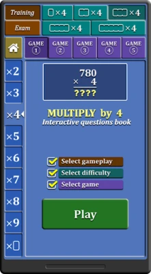 The Multiplyby4 app is a free book of unlimited interactive questions, designed to practice multiplication and division by 4. A good way to extend multiplication table of 4 and prepare for multiplication and division by two or three digit numbers.