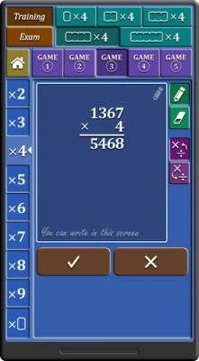 - you will choose between two ways of work: training or examination. This means choosing between a quick and stress-free multiplication training, or a ten-question test to check knowledge by a final grade.