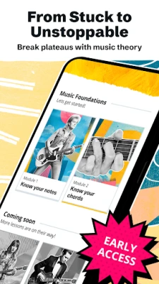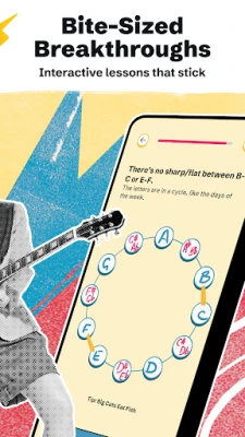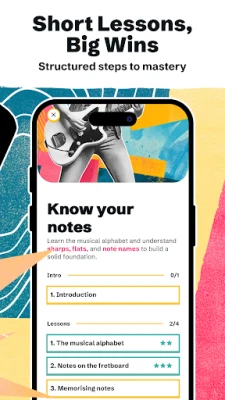 Unlike traditional courses, this app combines bite-sized guitar lessons with interactive fretboard exercises. No endless theory talk — just practical learning that connects directly to how to play guitar. Whether you play acoustic or electric guitar, Justin’s proven approach makes theory useful, fun, and motivating.