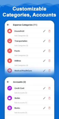 • Sub-Categories & Sub-Accounts: Organize your transactions with precision using optional sub-categories.
