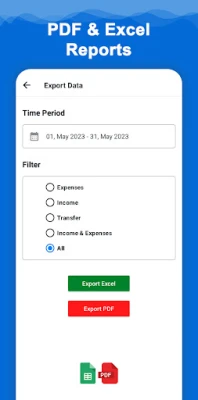 • Export Reports (PDF/Excel): Create professional financial reports to review expenses or prepare for taxes.