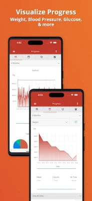 -Track and review your progress of weight loss, blood glucose and blood pressure improvements, exercise, water intake, and more