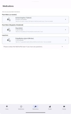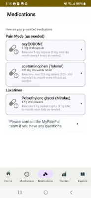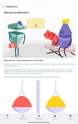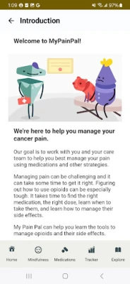 Managing pain is tough and it can take some time to get right. MyPainPal will give you tips for coping with pain, and how to use your medications most effectively. You’ll be able to report on your pain, medication use, bowel habits, and other symptoms. We will share your responses with your Care Team so that they can support the best. You can also browse through the resource library for information on pain medications, side-effects, coping skills, meditations, and other ways to manage your pain.