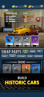 Driving Simulation & Tuning – Visit the race garage to customize your car motor and wheel setup for a faster car race.
