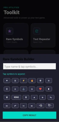 2. Rare Symbols & Decorations: Decorate your nickname with thousands of special characters and symbols like (ツ), ⚡, ⚔️, 👑, and more. Add unique borders and wings to your name to give it a "Pro Gamer" look.