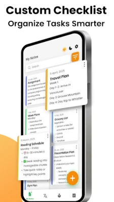 Create checklist notes to track tasks, shopping lists, or daily goals with easy notes. Stay productive by checking off completed items and keeping everything organized in one place.