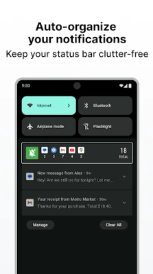 Filter notifications by app, group important alerts, and skip distractions. Set specific apps as important to keep them in your status bar with sound and vibration. Automatically organize others without cluttering your screen. Mark favorites, pin critical notifications, and find what matters most.