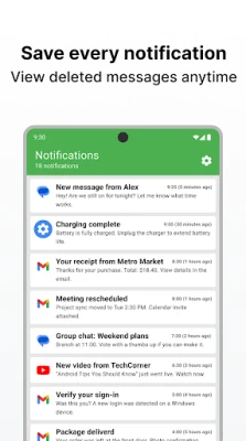 Automatically record every notification in a searchable log that never disappears. Check missed notifications from hours, days, or weeks ago. Search by app, keyword, or date. Your notification tracker works silently, ensuring you never lose important information.