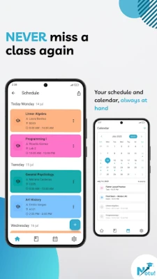 π COMPLETE COURSE MANAGEMENT: Add your subjects with schedules, classrooms, professors, and credits. View your academic week at a glance and easily manage each component of your academic period (trimester, quarter, semester, year, etc.).