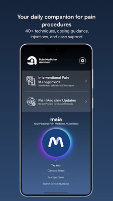 Previously known as the Interventional Pain App, the latest version introduces a refreshed design, region-based navigation, and new clinical features—now including MAIA, your built-in Medical AI Assistant.