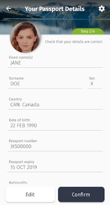 You can use the app to scan your passport to upload your details and scan your credit or debit card for ease of payment.
