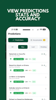• AI-Powered Predictions: Get intelligent predictions generated by advanced AI algorithms that analyze comprehensive match data, team form, head-to-head records, and statistical trends.