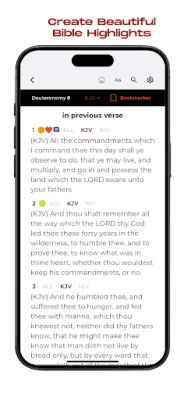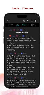 Effortlessly switch between the timeless elegance of the Old King James Version (KJV) and the modern clarity of the New International Version (NIV) for comparative study.