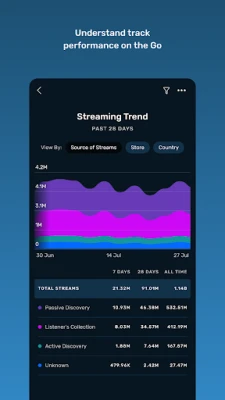 With OrchardGo, you can: - Understand consumption performance across your tracks, artists, products and playlist placements - Deep dive into trends across platforms and social channels - Monitor top chart performance