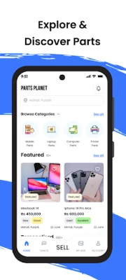 Parts Planet is a B2B and B2C marketplace app where users can buy and sell new or used electronic parts and repair tools across multiple categories including mobile, laptop, computer, printer, LED TV, and essential repair equipment.