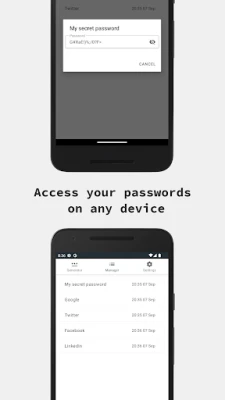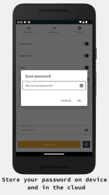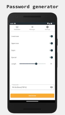 Simple and intuitive UI allows to generate password that will follow all security policies required by websites. Available options: * Password length * Lowercase * Uppercase * Digits * Special characters