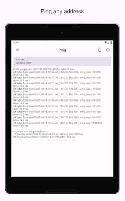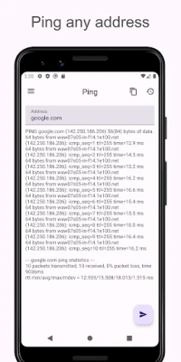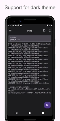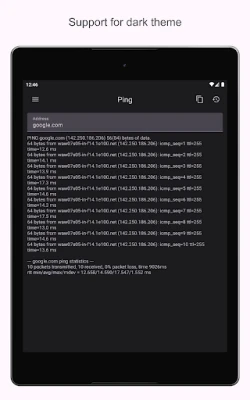 Main features * Ping any domain or IP address using ICMP protocol * Analyze your internet connection * Support for dark theme