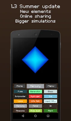 Features: - 34+ elements, more coming soon! - Load & save your creations - Online sharing - Fast forward - Infrared mode - Brush with size and shape control - Fill tool - Zoom - Custom textures - Day and Night cycle - Many more