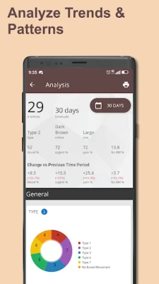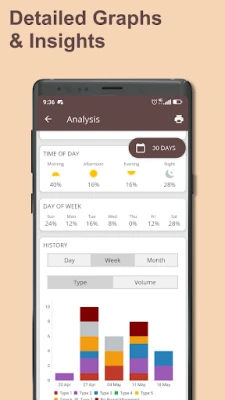- Graphs and summaries that visualize your bathroom patterns (Premium)