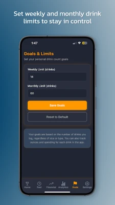 ✅ Set Smart Limits – Create weekly and monthly drink goals