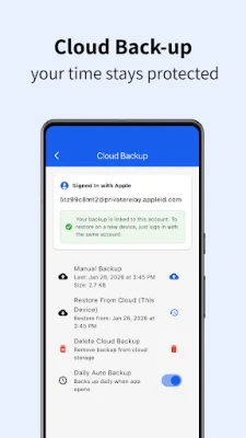 ☁️ Daily auto cloud backup — opens app, backs up once/day (Google/Apple sign-in restore or backup code for anonymous)