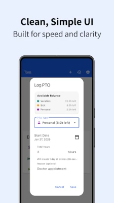 🗓 PTO manager — vacation/sick/personal allowances, log use, track balances/accruals
