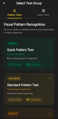 • Pattern Recognition Tests - Visual logic and spatial reasoning