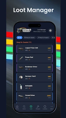 Raider's Toolkit - the most comprehensive companion app for ARC Raiders. Items, quests, loadouts, crafting, maps, and AI assistance. Built by raiders, for raiders.