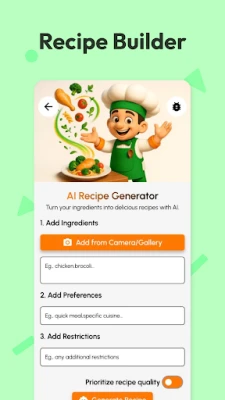 • AI Recipe Image Generation – See photorealistic images of your recipes created from the actual ingredients.