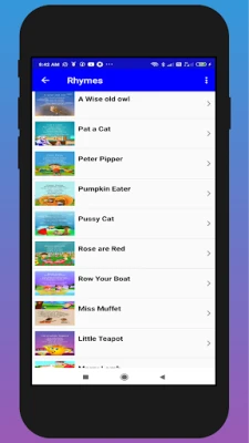 English Rhymes - Nursery kids song (offline) is an educational app to help your Children learn free to download and all learning rhymes kids songs free so that any kid with a smartphone can enjoy learning for free and learn the fun way OFFLINE.