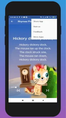 In this app with music and colorful picture to help your toddler learn best Rhymes in English . Best educational games for kids to Learn English Looking for a fun. If you like the app, please do give us a 5-star rating in the Play Store. Download this share and tell about our app to your friends, colleague and relatives . Thank you. Best wishes from RKS MOBILE SOLUTION.