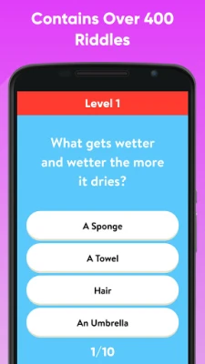 ★★ Features ★★ ✔ Hundreds of riddles and brain teasers ✔ 40 levels to unlock ✔ View riddles with answers after each question ✔ Fun family quiz game ✔ Suitable for kids and adult as it contains only family friendly questions ✔ Contains various types of riddles and brain teasers ✔ Have fun testing playing friends and family