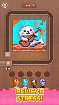 Game Features: -Simple controls for smooth gameplay! -With a single tap, send bobbins rolling along a conveyor to unwind yarn art. -Each color of yarn corresponds to a matching bobbin—tap at the right time to send it flowing down the line.